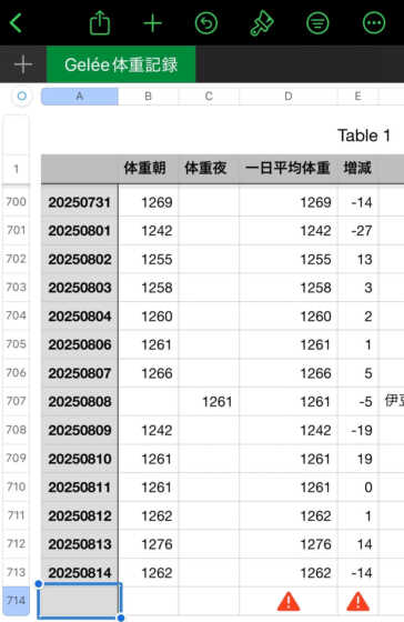 毎日のうんちを観察していると、少しずつばらつきが減り、6mmが多かったのですがだんだん8mmの大きくて健康的な形状のものが増えてきました。長年毎日見てきた飼い主としてはこの変化を見て「コスモスラクトラビット」の効果を嬉しく実感しています。また、今夏は使用開始前に初めての軽いうっ滞を経験したのですが、モニター開始以降その後は暑い夏でもお腹の調子が安定し、ジュレは毎日元気いっぱいの日々を過ごせました。毎朝測る体重も特に大きな変化はありませんでした。