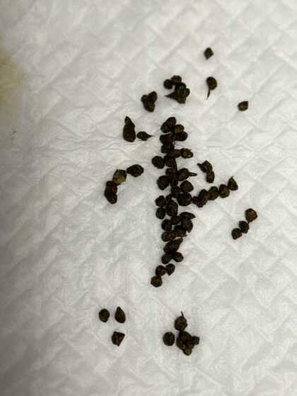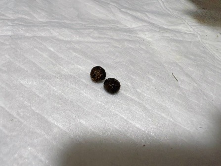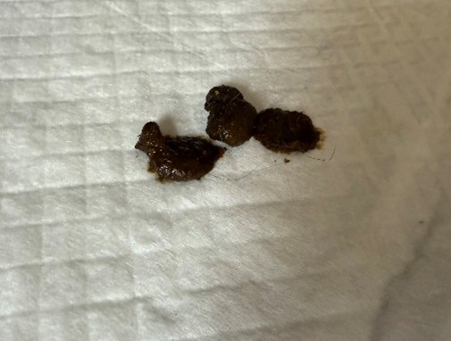 週に2回ほど親指先ほどの大好きなドライりんごをおやつとして楽しむ程度で、基本的にはお腹にも良い生活を心がけています。しかしながら、出てくるうんちは黒く湿った状態で、大きさもまちまちです。