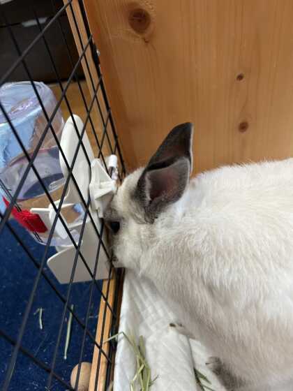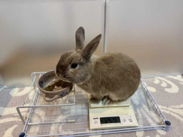 お悩み/うっ滞になりやすい、シリンジ飲みが出来ない、生野菜を食べない、チモシーの好き嫌いが激しい(現在は色々試した結果、2種類のチモシー一番刈りをブレンド)。